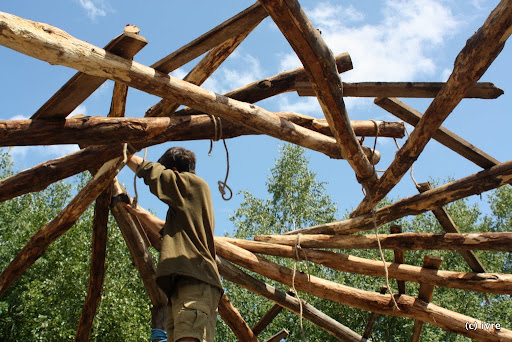 Για πάτωμα χρησιμοποίησε ξύλα. Για έπιπλα έβαλε ότι βρήκε σε κάδους σκουπιδιών και ότι …ξέβρασε κοντινός χείμαρρος, ενώ για την κατασκευή της σκεπής χρησιμοποίησε άχυρα και κλαδιά δέντρων. Όσο ο Σάιμον Ντέιλ σμίλευε και μαστόρευε, η σύζυγός του, Τζασμίν, και τα δύο παιδιά ζούσαν σε σκηνή, στο ύπαιθρο.