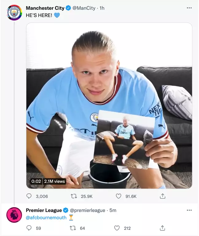 Η μεταγραφή του Έρλινγκ Χάαλαντ έγινε η αφορμή για να «διαρρεύσει» η αντίπαλος της Μάντσεστερ Σίτι στην πρεμιέρα της Πρέμιερ Λιγκ για την σεζόν 2022/23, με τον επίσημο λογαριασμό της Λίγκας να κάνει μεγάλη γκάφα.