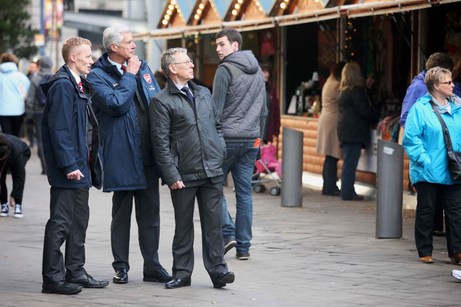 Τρεις σωσίες των Αρσέν Βενγκέρ, Ντέιβιντ Μόγιες και Σερ Άλεξ Φέργκιουσον έκαναν τη βόλτα τους στην αγγλική πόλη και έδωσαν έναν διαφορετικό, ποδοσφαιρικό τόνο σε ένα «βαρετό» καταναλωτικό πρωινό, αφού από τη μία η μίμηση των τριών προπονητών ήταν αρκετά πετυχημένη και από την άλλη αρκετός κόσμος θέλησε να φωτογραφηθεί μαζί τους.