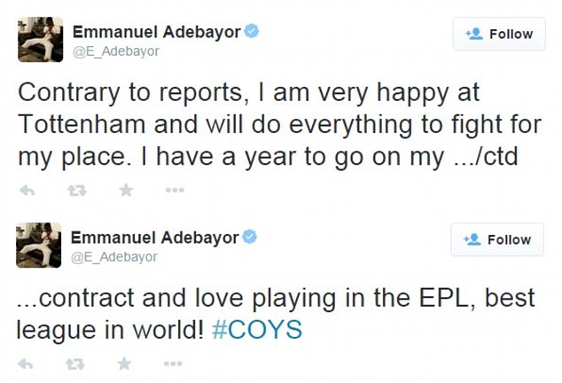 Τι και αν τα δημοσιεύματα των θέλουν να βρίσκεται στη «μαύρη λίστα» της Τότεναμ ενόψει καλοκαιριού; Ο Εμάνουελ Αντεμπαγιόρ ξεκαθάρισε μέσω twitter πως είναι... χαρούμενος στα «σπιρούνια» και δεν αναμένεται να αποχωρήσει πριν τη λήξη του τρέχοντος συμβολαίου του!